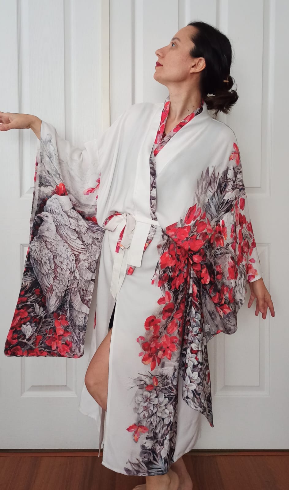 Beyaz Tavuskuşu Resimli Kimono