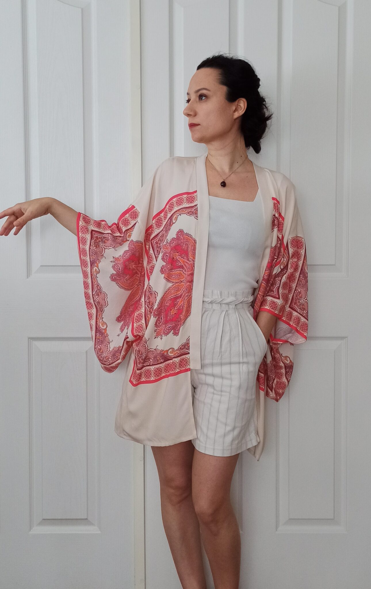 Kırlangıç Desenli Beyaz Gömlek Kimono