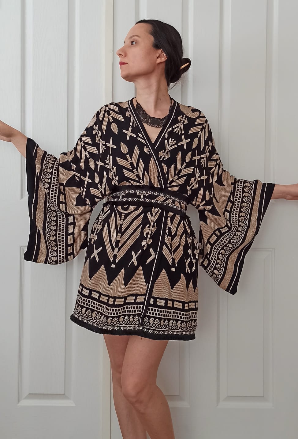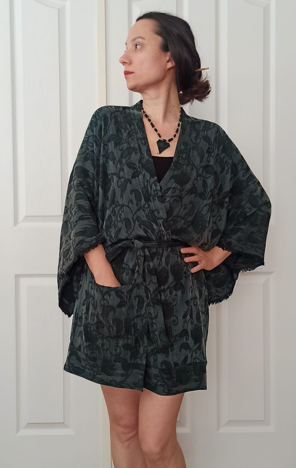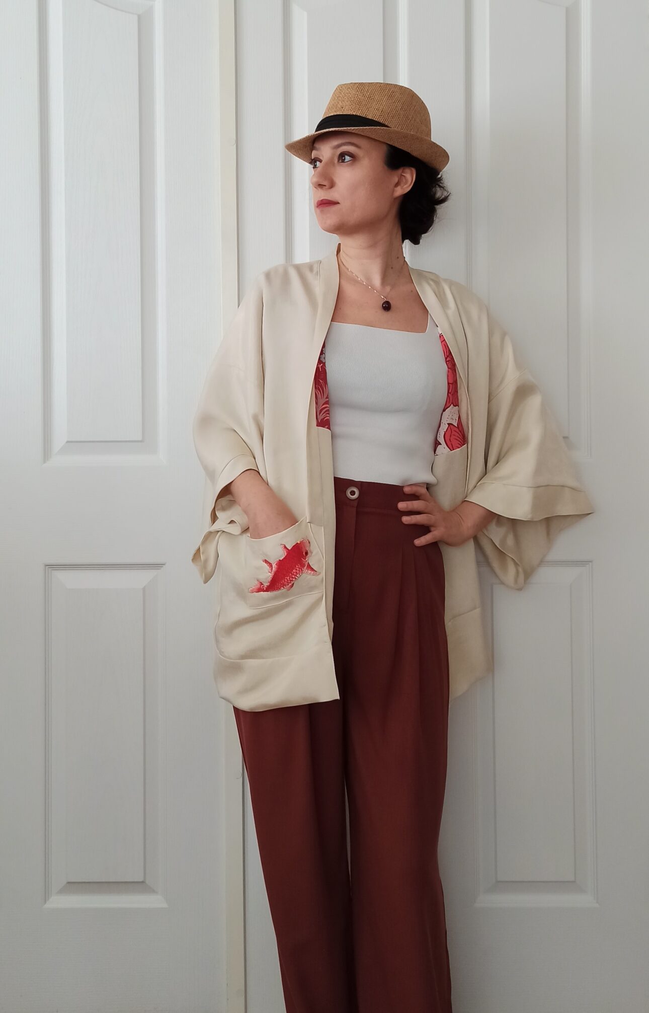 Japon Balığı Nakış Detaylı Kimono Jeket